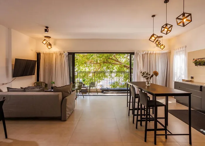 Featuring views of the city, the spacious 4-bedroom Nachmani Luxury Apartment By Nimizz is located 12 minutes' walk from Lilienblum Street. Set a few minutes' drive from White City, the apartment with a terrace overlooks the garden.